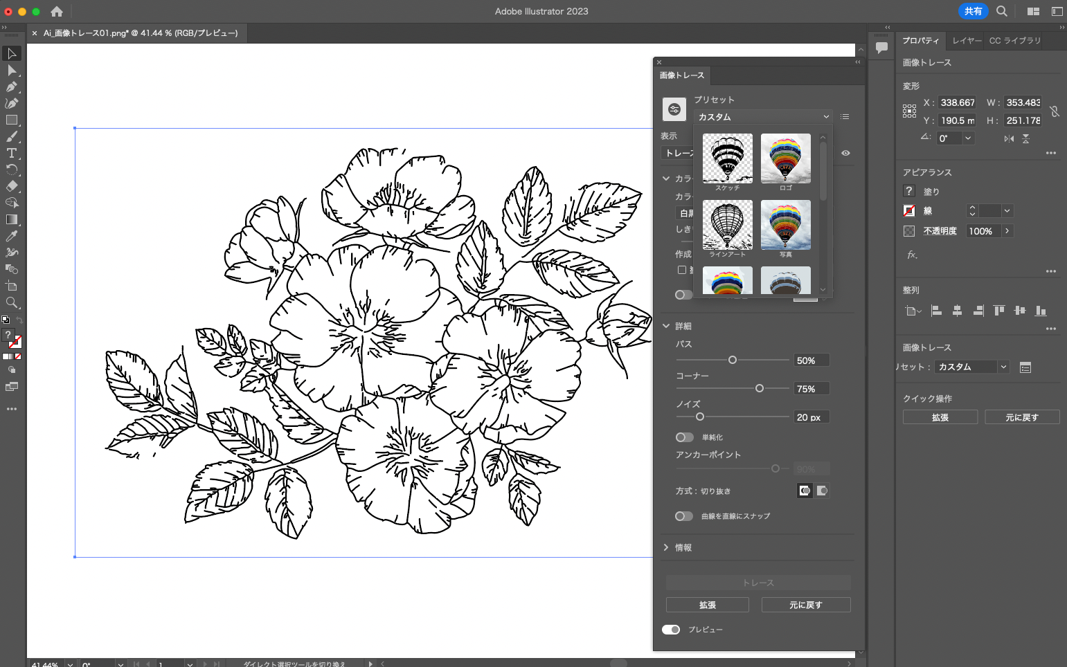 最新バージョンのAdobe Illustratorには、「ReType(フォントの再編集)ベータ版」、新しいレイヤー機能、画像トレース機能の強化などの新機能も含まれており、アートワークをこれまで以上にスピーディかつ簡単に作成できるようになりました。詳しくはこちら ( https://www.adobe.com/products/illustrator/generative-recolor.html ) (英語)をご覧ください。