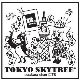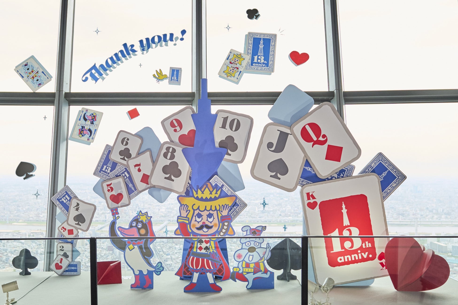 東京スカイツリーでは、トランプのキング「K」をモチーフとした限定グッズや限定カフェメニューを販売します。さらに、5月22日(木) 10時から、東京スカイツリーご入場のお客さまに13周年デザインのオリジナルトランプ風カードをプレゼントします。