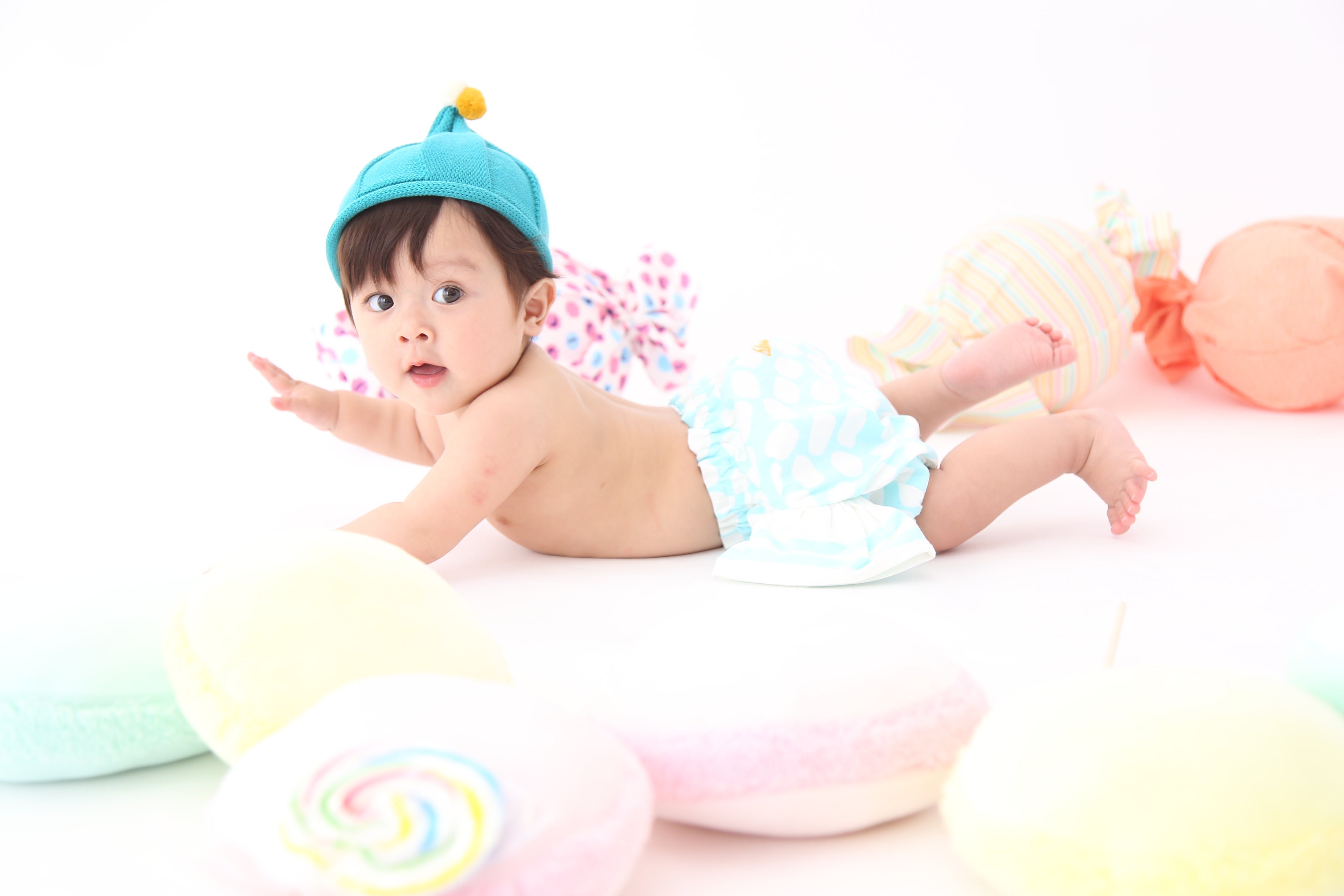 可愛いお菓子のスタジオセットとキャンディーパンツでベビーフォトが撮影できちゃう「キャンディーフォトキャンペーン」開催!