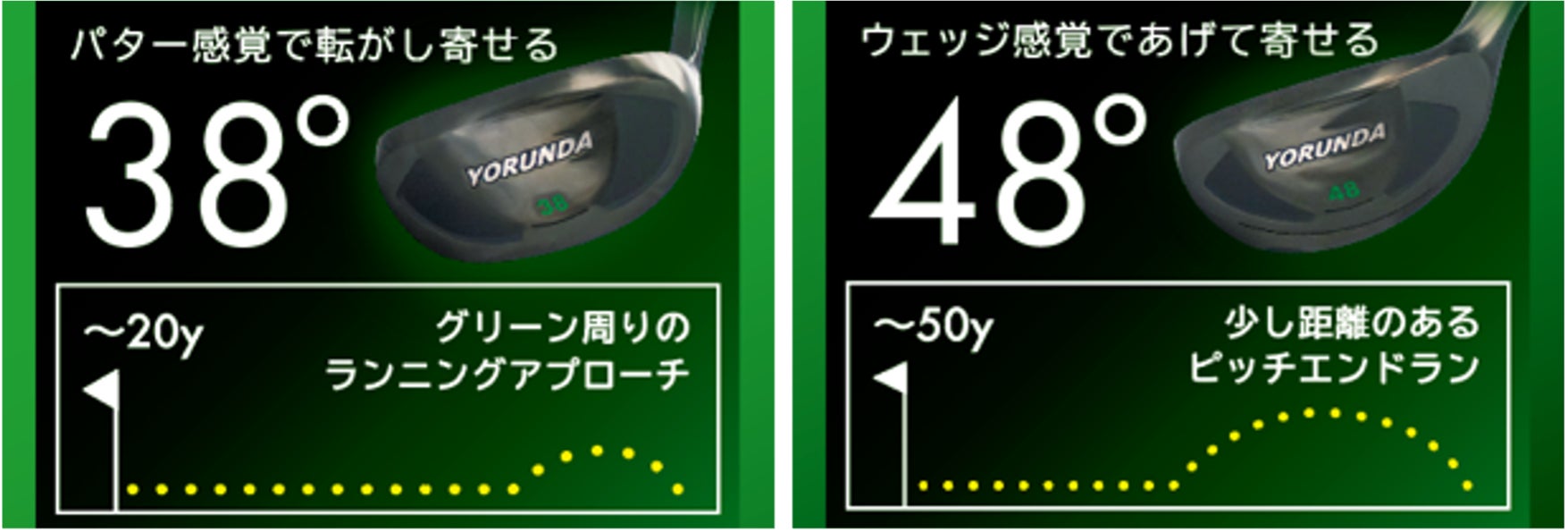 ランニングアプローチに最適な38度と、ピッチエンドランに最適な48度の2タイプを用意。