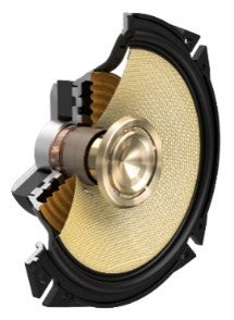 「グラスファイバー振動板」は、グラスファイバーの網目の大きさや不織布の密度、振動板全体の強度など、綿密に再検討を重ねて新設計。ウーファーの振動板を硬く調整することにより、ボーカル帯域を含む中低域に厚みと明瞭感のあるサウンドを実現します。