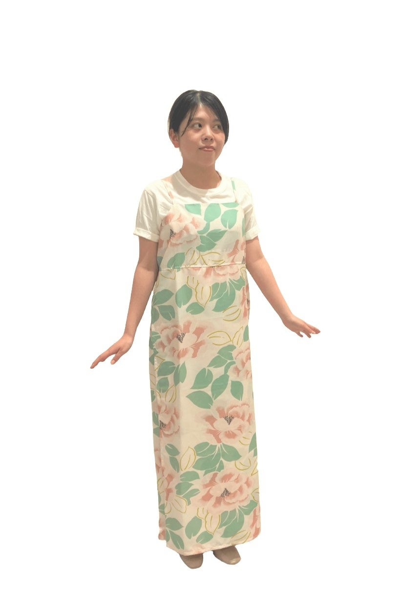 巻きスカートの上に上着を羽織り付属の帯をリボン結びにするだけで簡単に着用可能。