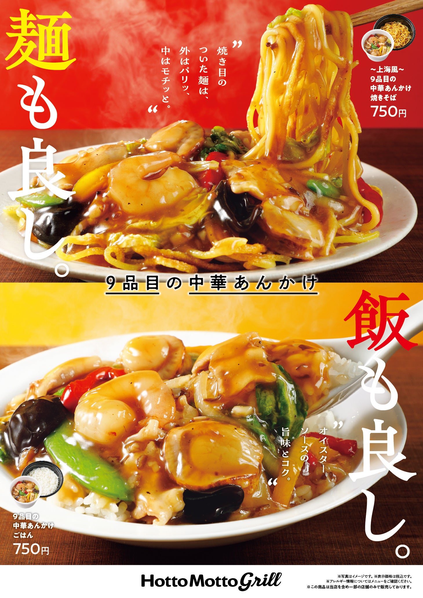 「ほっともっとグリル」寒い冬に嬉しい、とろ~りあったかのあんかけメニュー登場 オイスターソースや紹興酒を使用した本格派 9品目の中華あんかけ焼きそば/ごはん 2月20日(月)新発売