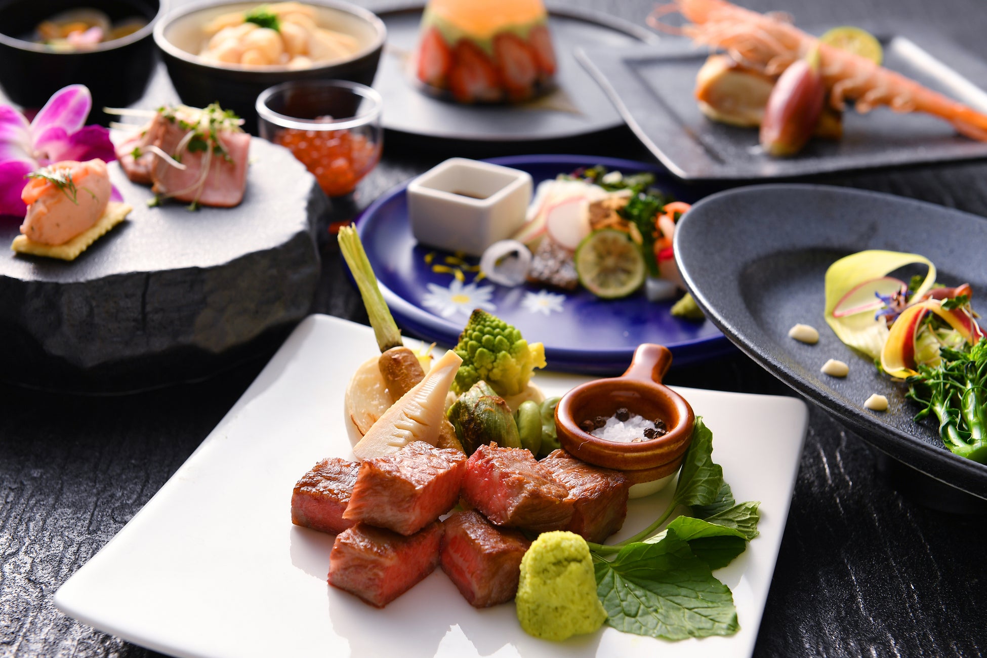 目の前で繰り広げられる鉄板焼きの妙技とともに、窓越しに広がる花火をゆったりとご鑑賞いただけます。香ばしい音と香りに包まれる贅沢なひとときを、ぜひご堪能ください。
