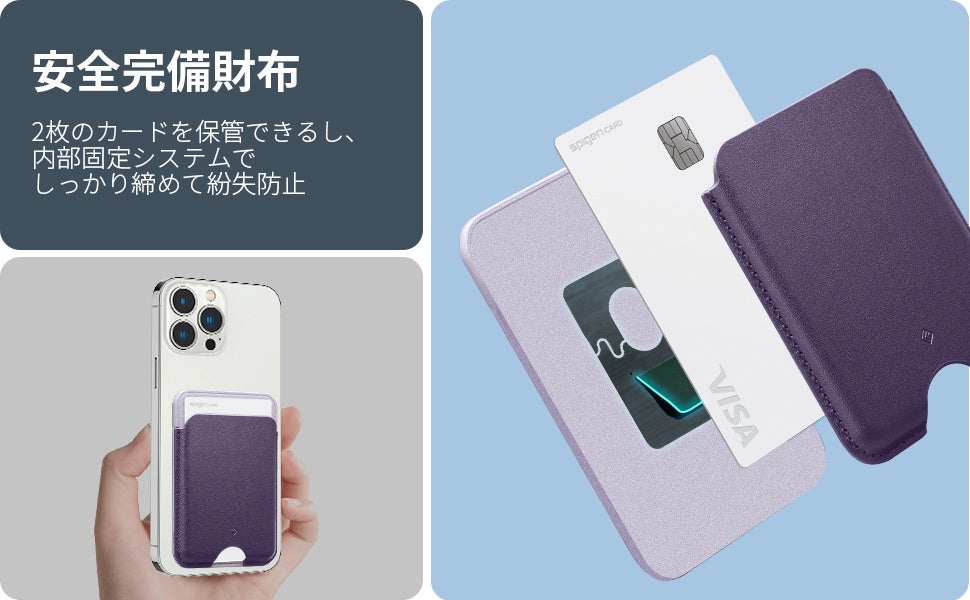 1.最大カード2枚まで収納可能で、1枚収納時にも内部固定設計による安全な収納が可能