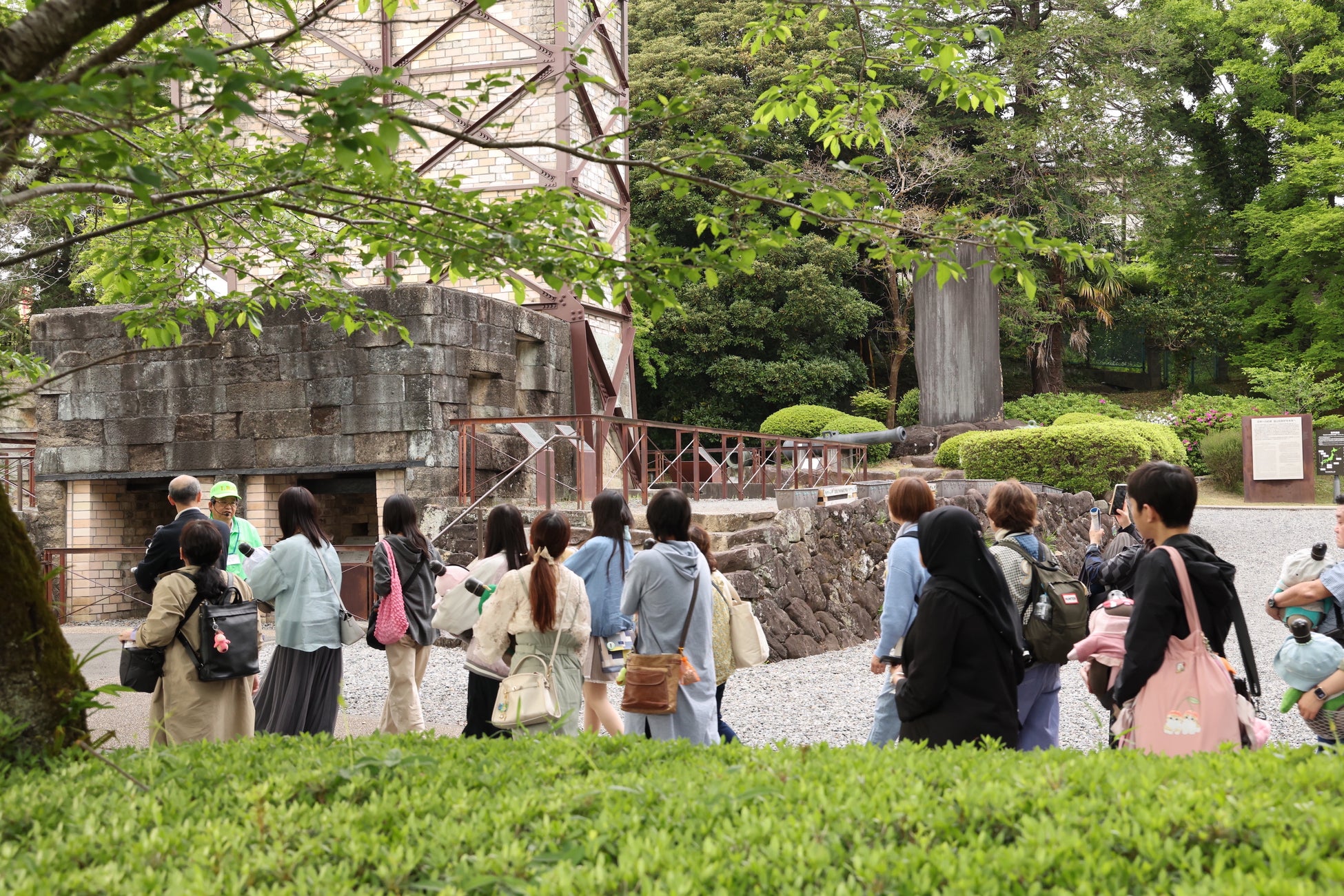 鋳鉄の溶解が実際に行われた、現存する世界唯一の反射炉は高さ15.6mを誇り、その迫力に圧倒される参加者の姿も。反射炉の歴史についての丁寧な説明に耳を傾けながら、伊豆の国市の文化と産業のルーツに触れる時間となりました。