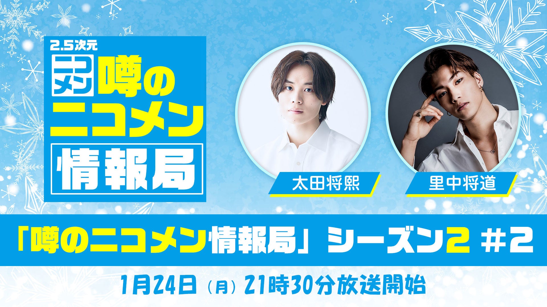 太田将熙・里中将道 生出演決定!「噂の二コメン情報局」シーズン2 第二回目の番組情報発表