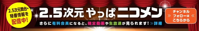 ニコニコチャンネル「2.5次元 やっぱニコメン」の開設後、再びレギュラー生放送として2021年12月からリニューアルしている。リニューアル第2回目は、俳優の太田将熙・里中将道(※50音順)をゲストで迎えることが決定した。