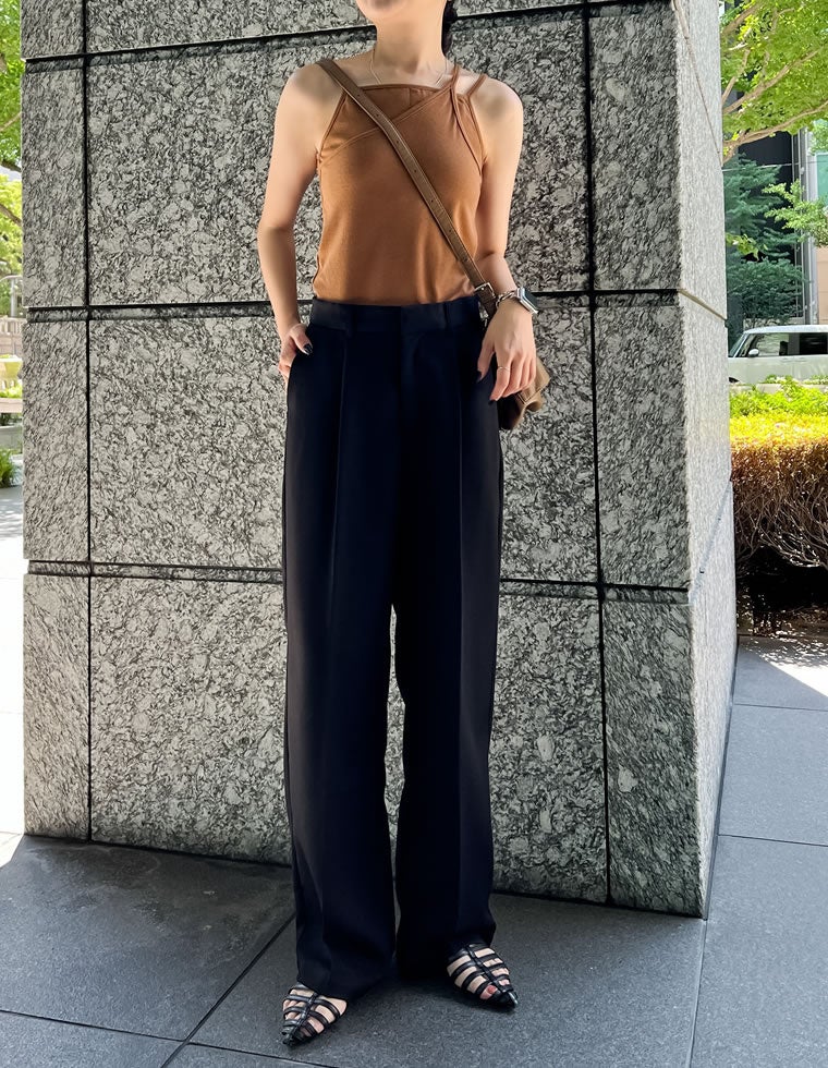 普段使いにぴったりの涼しいインナー。 ひんやり&さらさら生地は、べたつく夏はマストハブ! インナーを気にせずコーディネートできるのも、カップ付きインナーの魅力です。 インナーを涼しいものに変えるだけで、長袖やジャケットとのレイヤードも快適な着心地に◎ もちろん、1枚でも着用できる、シンプルながらもトレンド感のあるデザインに仕上げました。