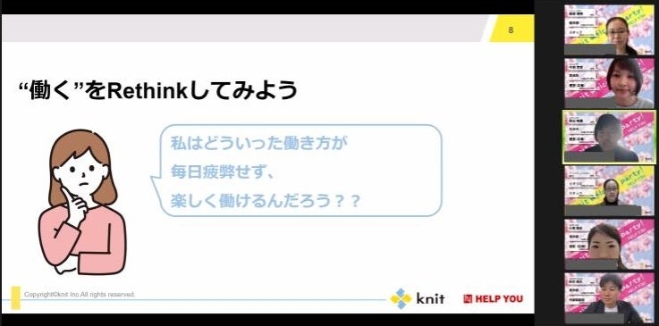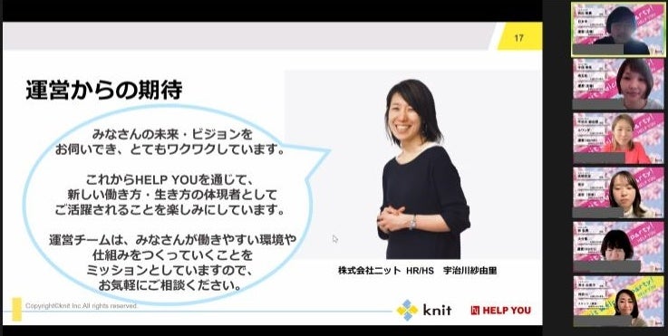 現在、ニットには世界33カ国から集まった約400名のメンバーが在籍しており、子育て・介護・副業(複業)などさまざまなライフステージやキャリアと両立して働いています。今回新しくHELP YOUにジョインした新人ディレクター、新人スタッフのメンバーが参加しました。