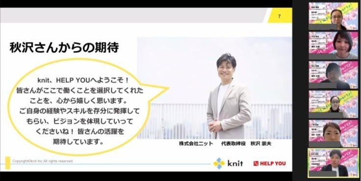 オンラインアウトソーシングサービス「HELP YOU(ヘルプユー)」を運営する株式会社ニット(本社:東京都品川区、代表取締役:秋沢崇夫、以下ニット)は、2015年にフルリモート前提で創業し、現在、約400人が日本全国・世界33カ国からオンラインで業務を遂行しています。今回、新しくジョインしたメンバーも世界各国・日本全国から集まりました。オンラインイベントは、新型コロナウイルスの感染リスクを避けて実施できるだけではなく、メンバー全員とのつながりを創出できる点が大きなメリットです。そこで令和4年4月1日、これまでにオンライン事業の運営で培ったノウハウを活かし「オンラインWelcome Party」を実施しました。