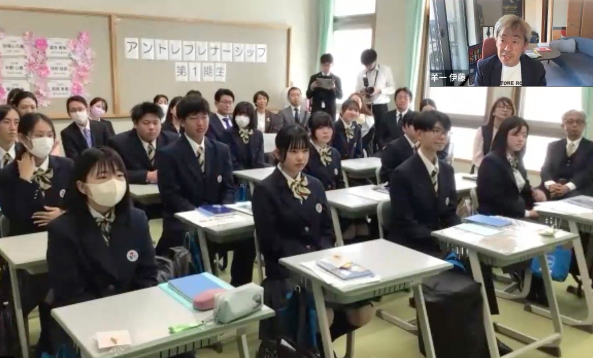 聖隷クリストファー高等学校は2026年4月から「アントレプレナーシップ・クラス」を新設しました。これに先駆けて、2024年の後半から本学アントレプレナーシップ学部との交流をスタートし、アントレプレナーシップ教育に関する知見を共有してまいりました。2026年4月8日に行われた同校の「アントレプレナーシップ・クラス始動集会」ではアントレプレナーシップ学部 学部長の伊藤 羊一から同校の新入生に向けて、お祝いのメッセージとアントレプレナーシップに関する講話をオンラインで行いました。