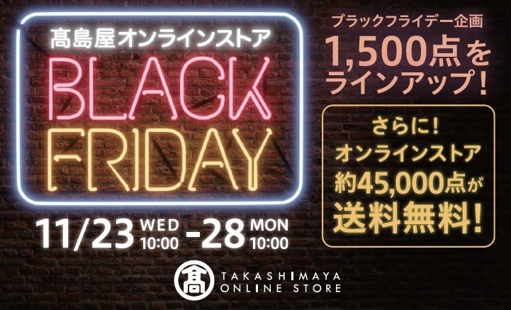 【ブラックフライデー/髙島屋オンラインストア】いよいよ、スタートまであと1週間!ラインアップは厳選 約1,500点。さらに! 開催期間中は、オンラインストア掲載商品約45,000点が「送料無料」に!
