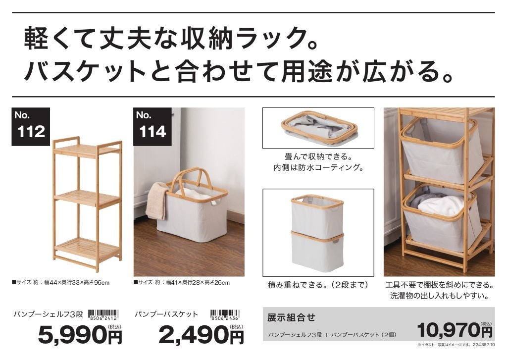 この度ニトリは、バスケットごと折りたためるバンブー収納ラックを発売いたしました。