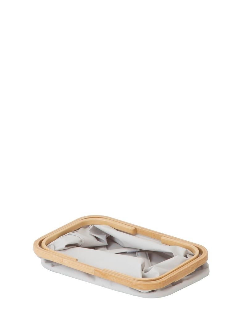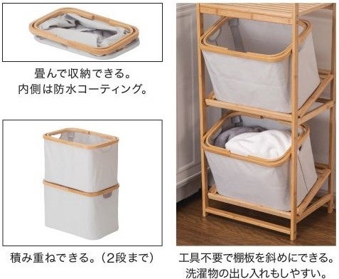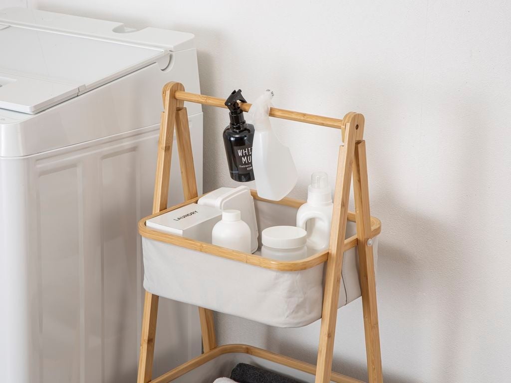 「使わない時にバスケットが邪魔だ」というお客様の声にお応えして、すき間などにサッとしまいやすいラックを開発。環境に配慮したバンブー素材で、軽くて丈夫な仕様です。