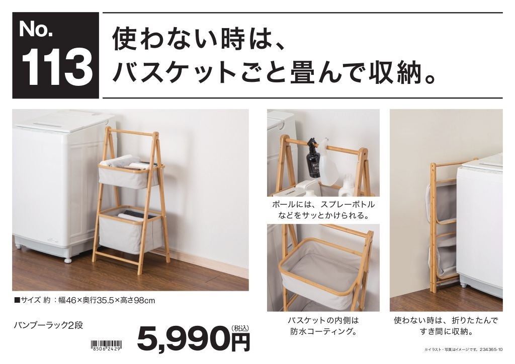 【ニトリ】使わないときはすき間へ収納!バスケットごと折りたためる、軽くて丈夫なバンブーラックが新登場