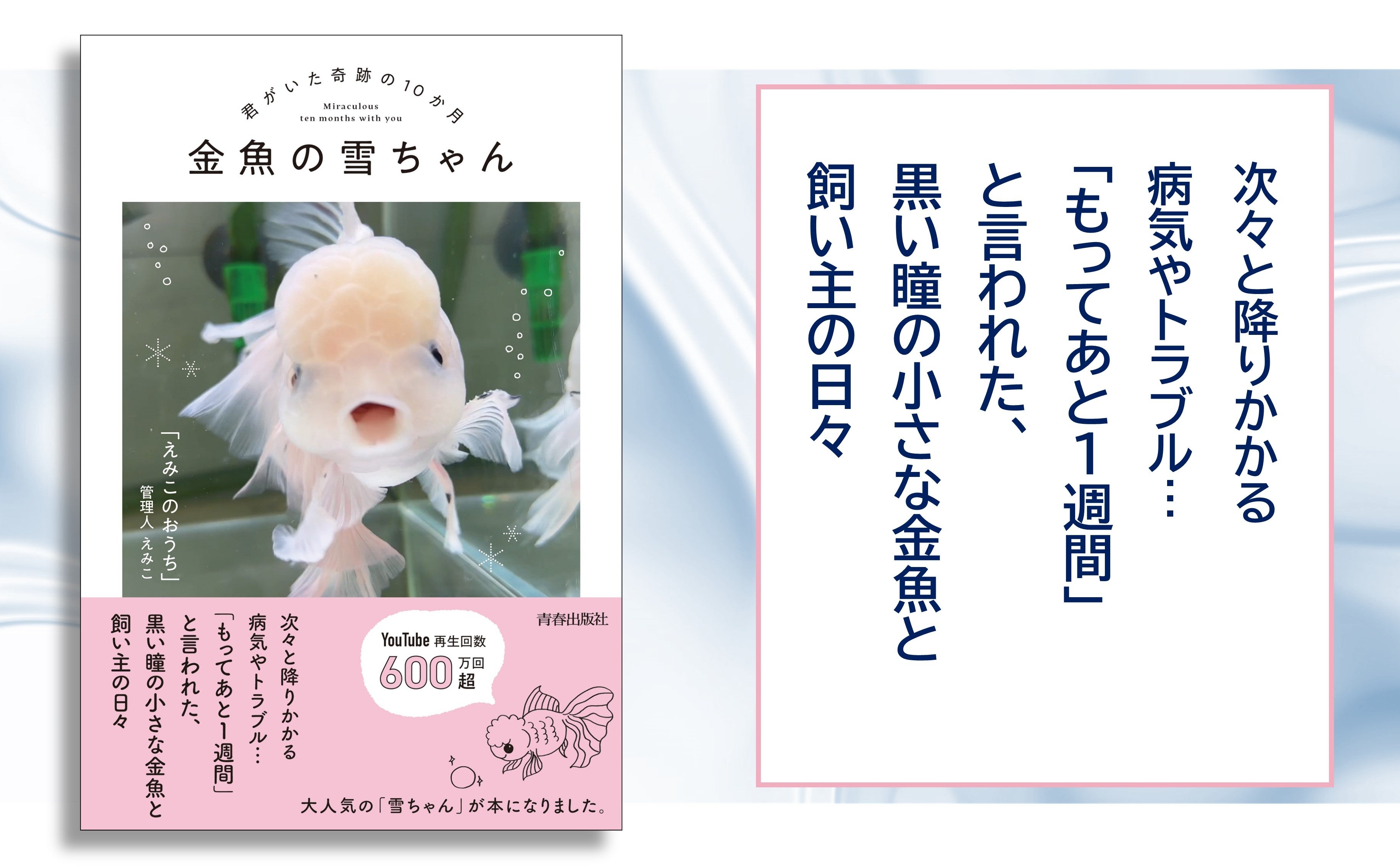 発売前重版決定!『金魚の雪ちゃん~君がいた奇跡の10か月~』YouTube再生回数600万回超、大人気の「雪ちゃん」が本になりました!
