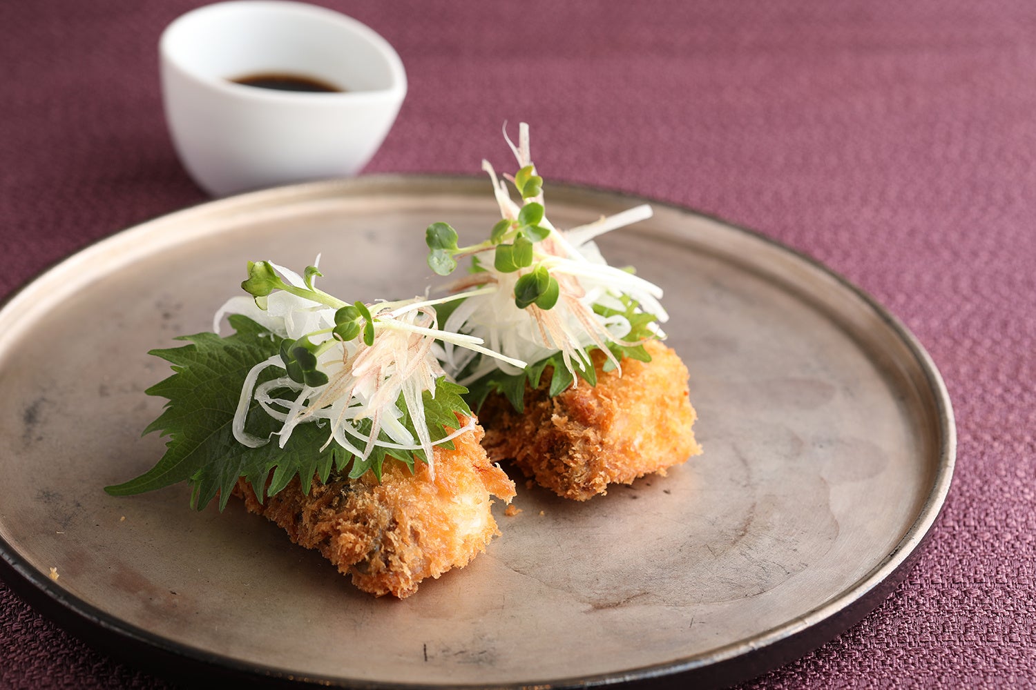 鮮度の良い活〆ぶりをふわふわサクサクに仕上げたぶりカツ。香味野菜とおろしポン酢でさっぱりとお召し上がりいただけます