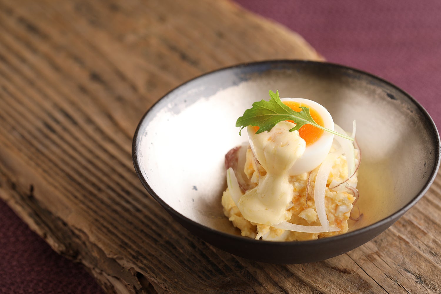 いちえん農場のこだわり卵は、自然循環型農業の放し飼い環境で健康に育った「土佐ジロー」や「もみじ」を使用しています。あえんおすすめの秋を感じるポテトサラダです。