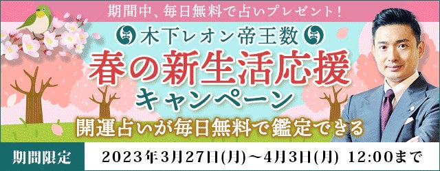 テレシスネットワーク株式会社(本社:東京都港区、代表取締役:鷹石惠充 https://www.telsys.co.jp/)は、2023年3月27日(月)より、月額公式サイト『木下レオン◆帝王数』にて、「春の新生活応援キャンペーン」を公開いたしました。