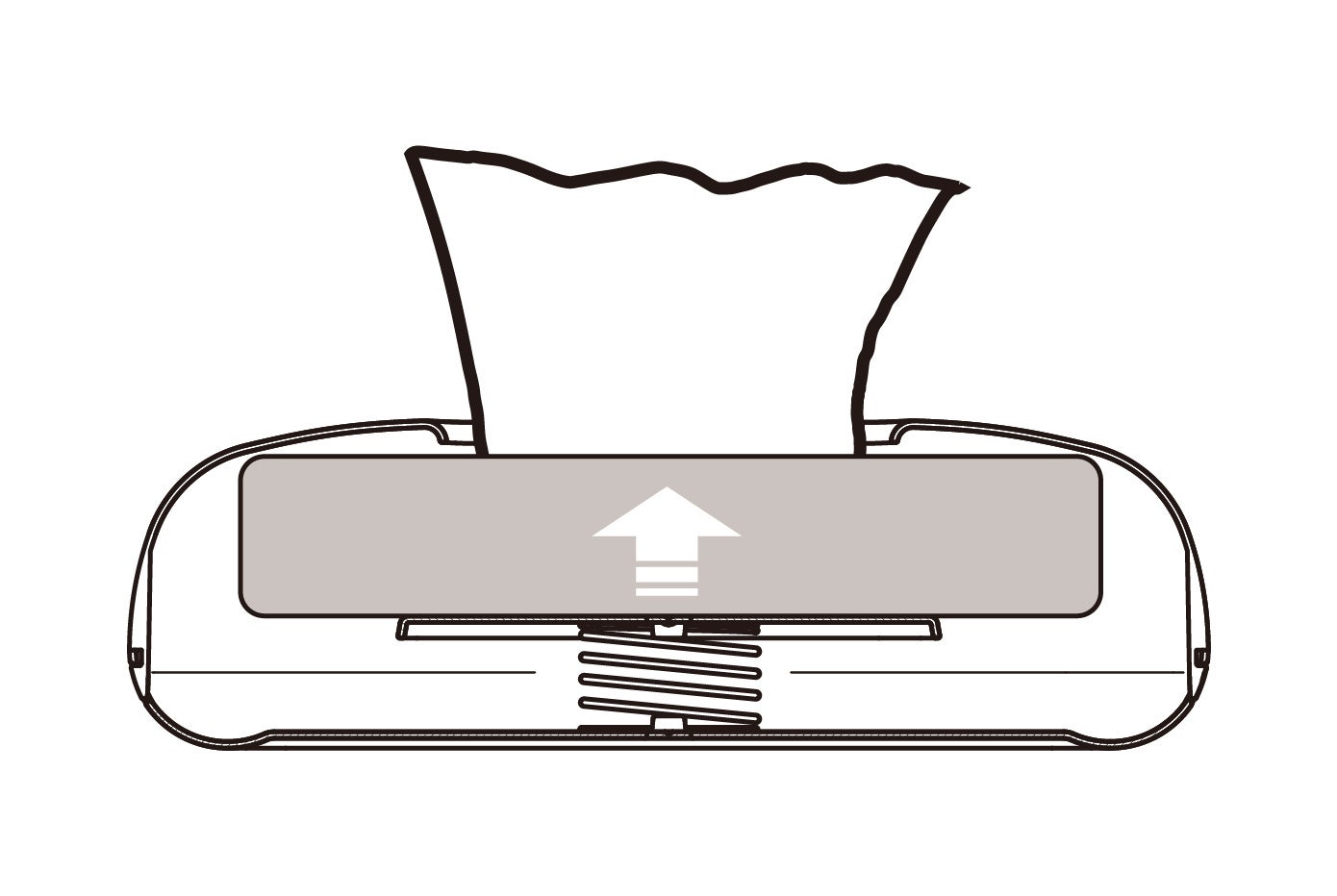 ティッシュが少なくなっても取り出し口の近くにある状態が続くため、最後まで取り出しやすさが変わりません。箱を振ったり中身を寄せる必要もありません。