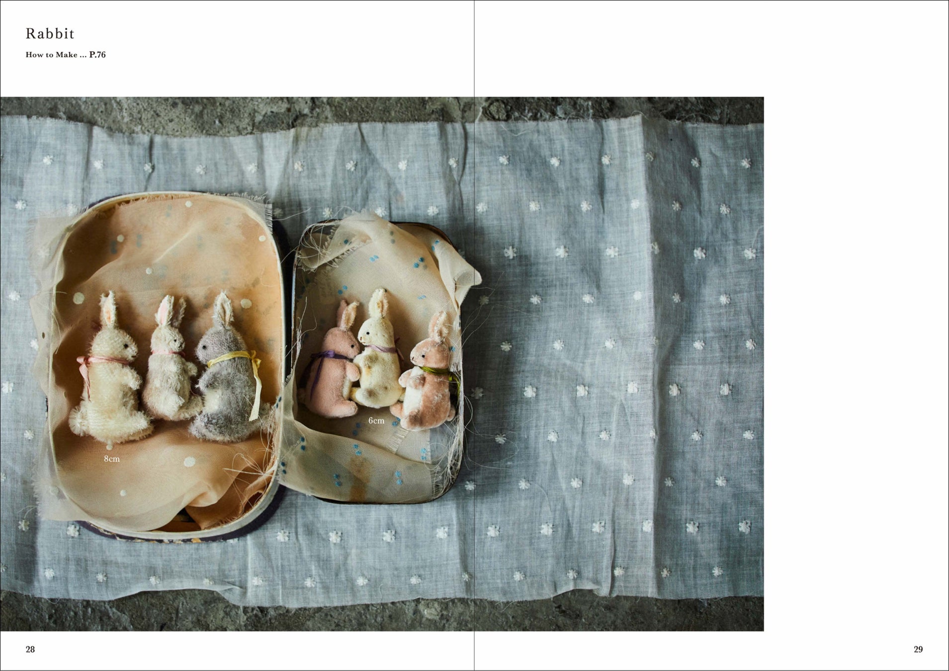 A small story in the forest(森田さんの作品による5つのお話)/くまさん/ねこさん/うさぎさん/ひつじさん/いぬさん/りすさん/きつねさん/ぞうさん/ねずみさん/Rabbit/Dog/Sheep/道具/材料/布/アンティーク加工の塗料とコツ/本書で使う3種の縫い方/鼻のバリエーション/作り方/型紙