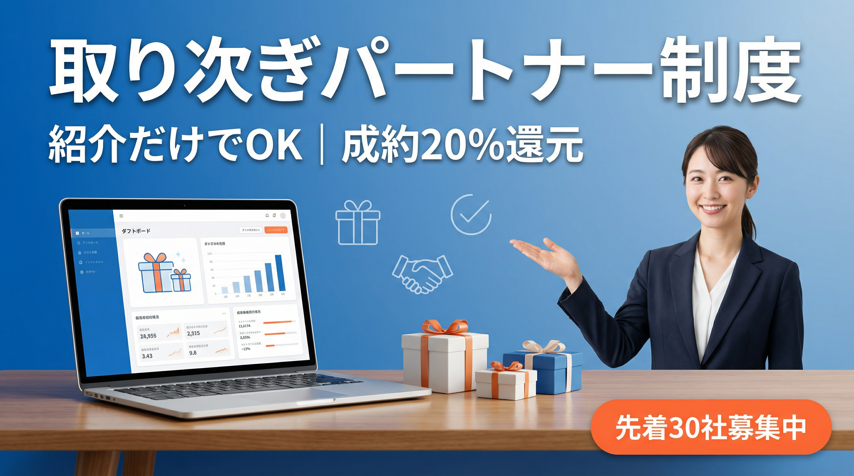 年度末・新年度の短納期キャンペーンを共同提案。紹介だけでOKの「取り次ぎパートナー制度」を開始(先着30社/成約20%還元)