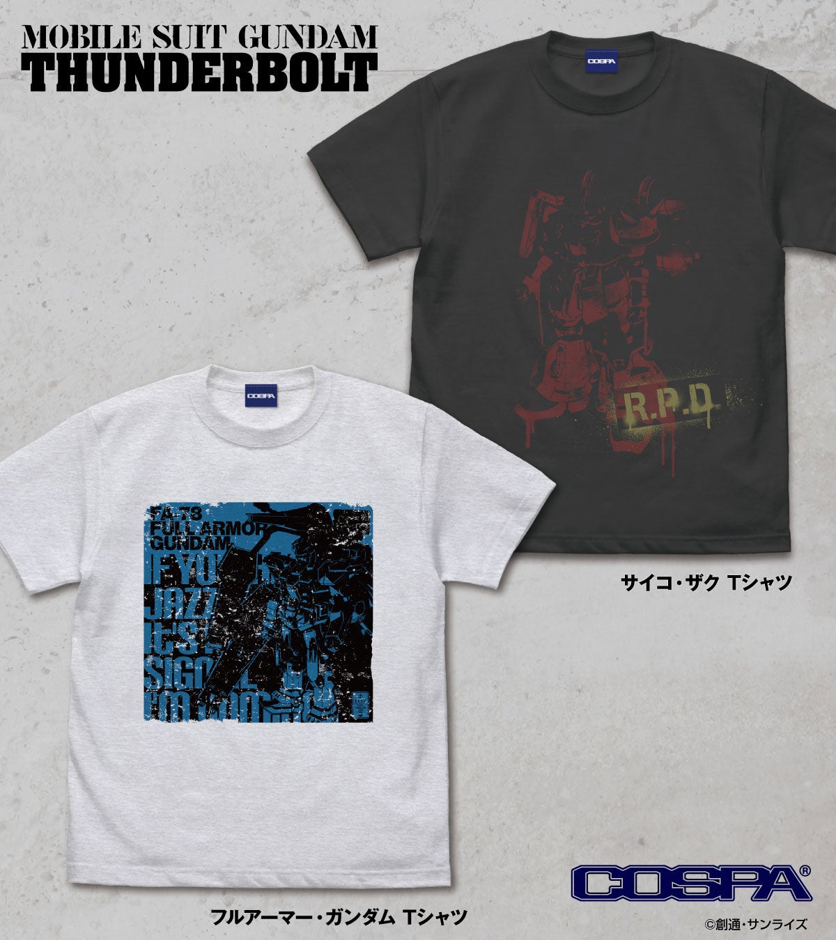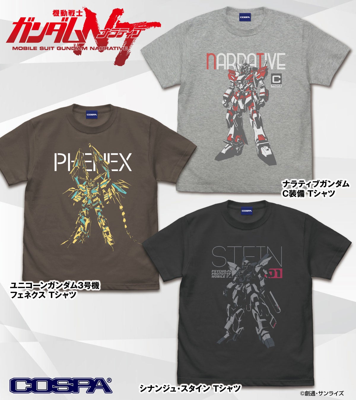 公式キャラクターコスチュームやアパレル、グッズの企画、開発、製造を行う株式会社コスパは『機動戦士ガンダム サンダーボルト』『機動戦士ガンダムNT』新作Tシャツ5種を発表した。5月下旬予定で予約受付中。