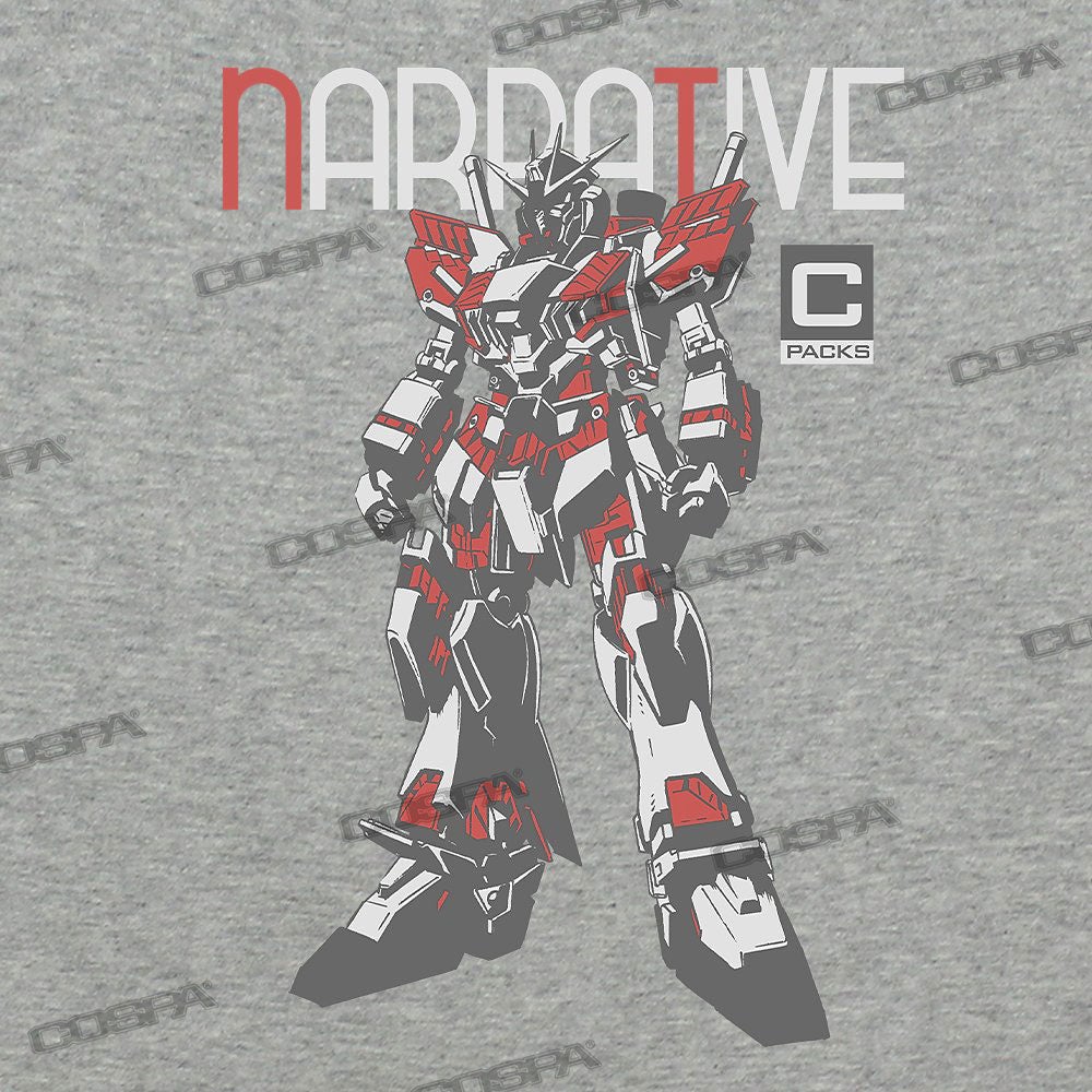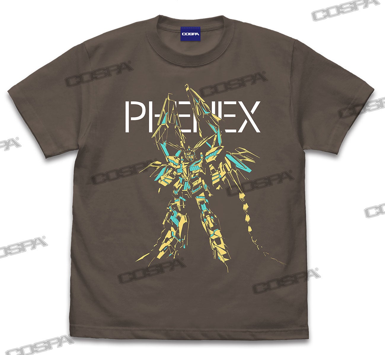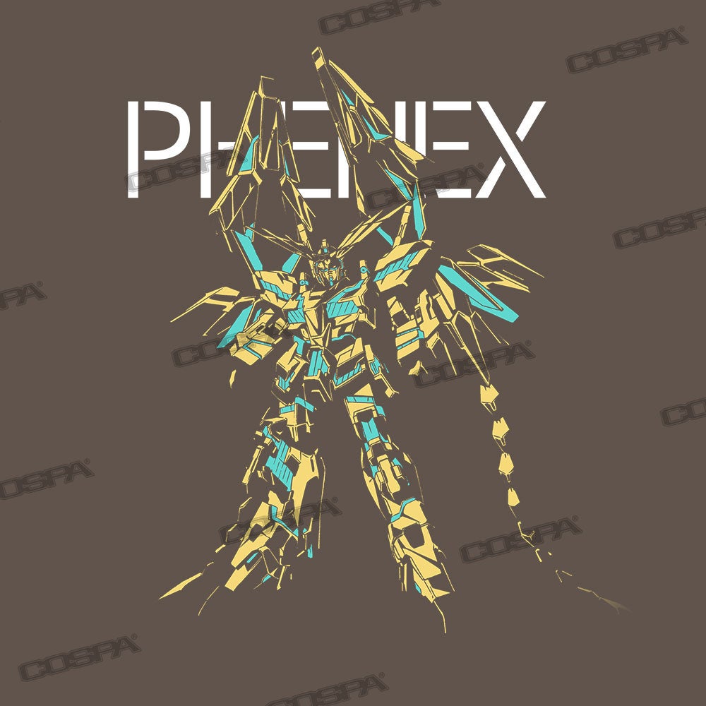 不死鳥姿の悪魔フェネクスを冠するユニコーンガンダム3号機。頭部の角やアームド・アーマーなどその名を彷彿とさせる姿をTシャツへデザインしている。