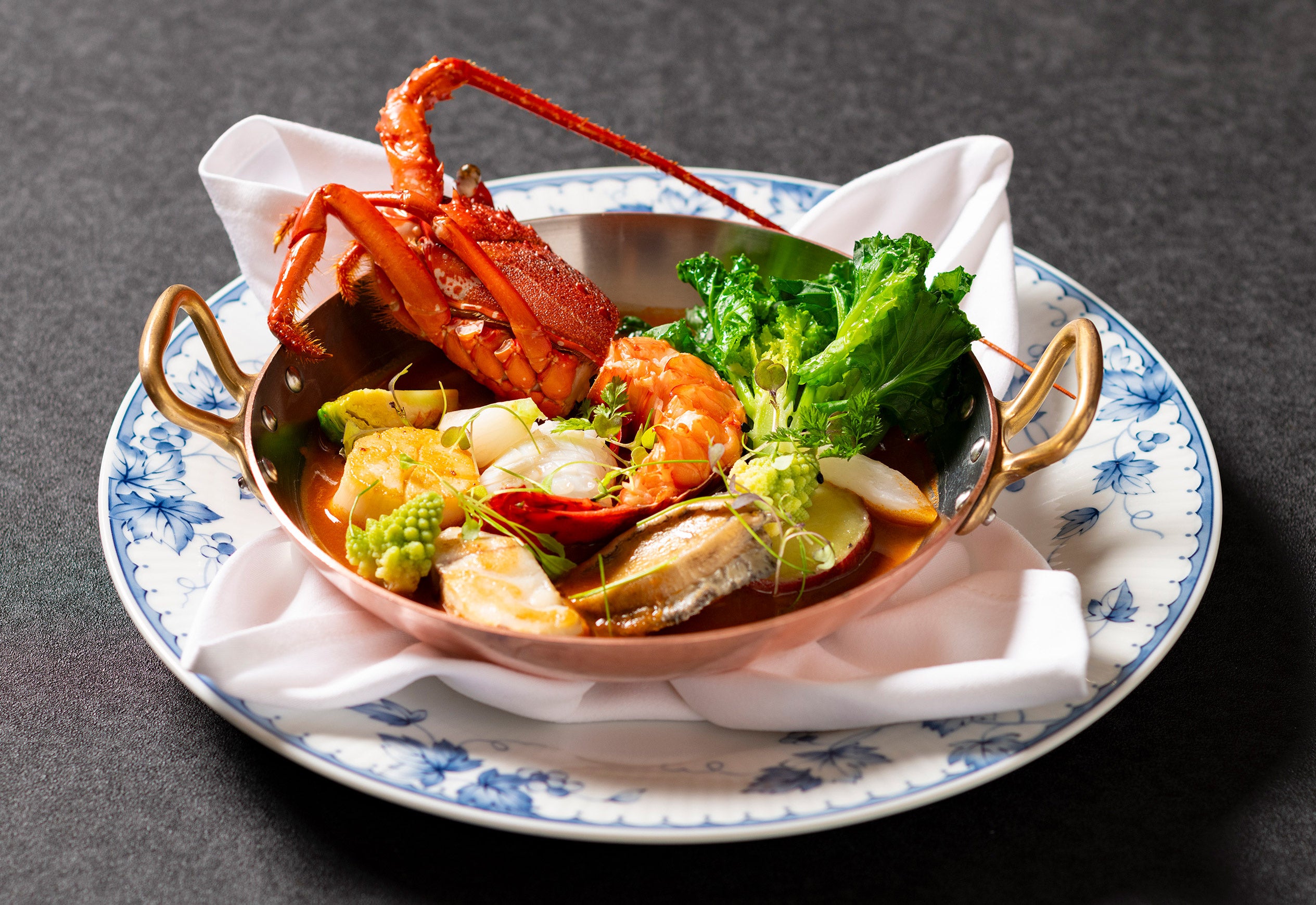 ・国産伊勢えび、鮑、鮟鱇、帆立貝、墨烏賊のブイヤベース仕立て