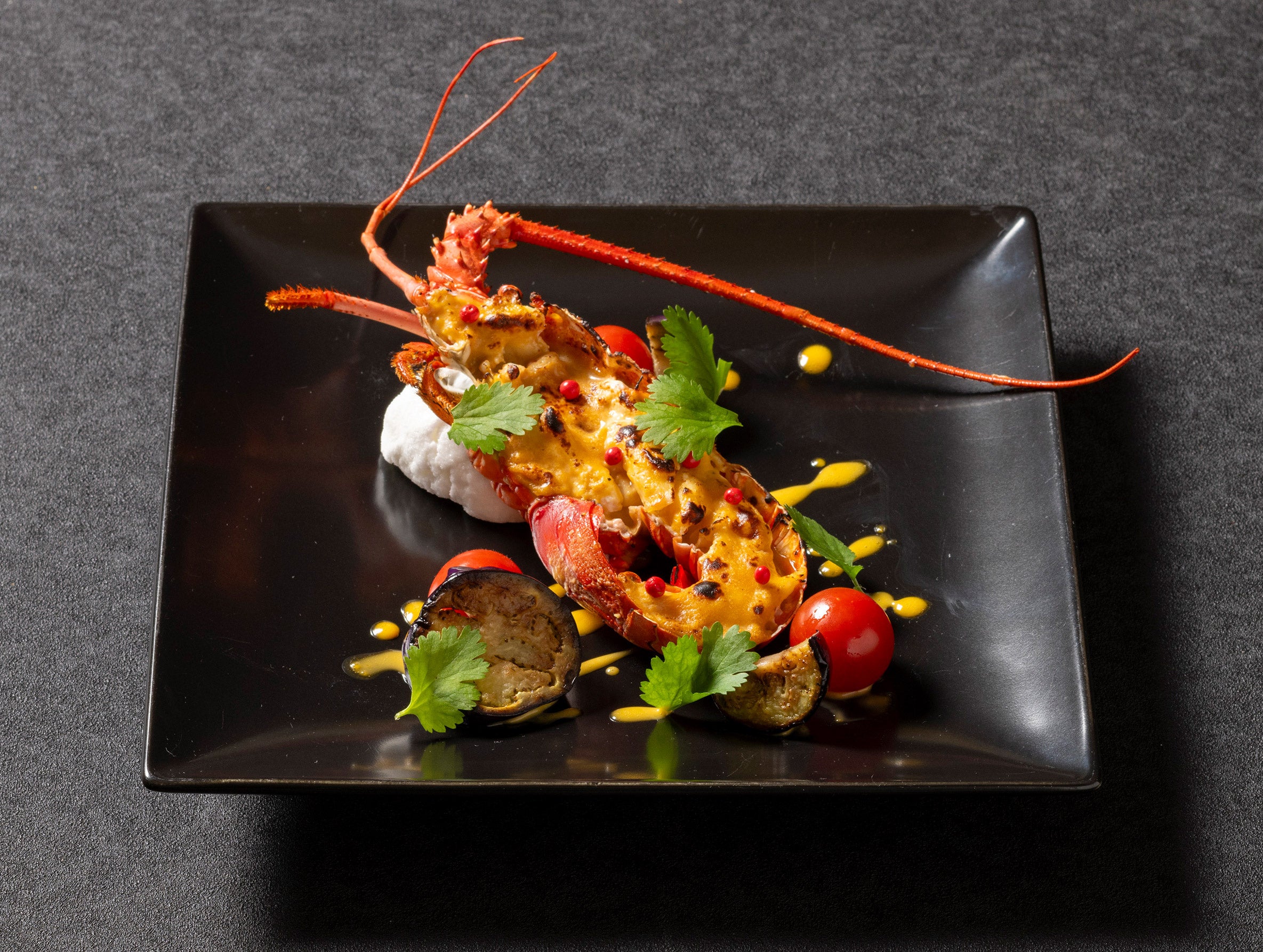 ・国産伊勢えびの炭火焼きカルボナーラ仕立て:1尾¥6,820 / 半身¥4,730