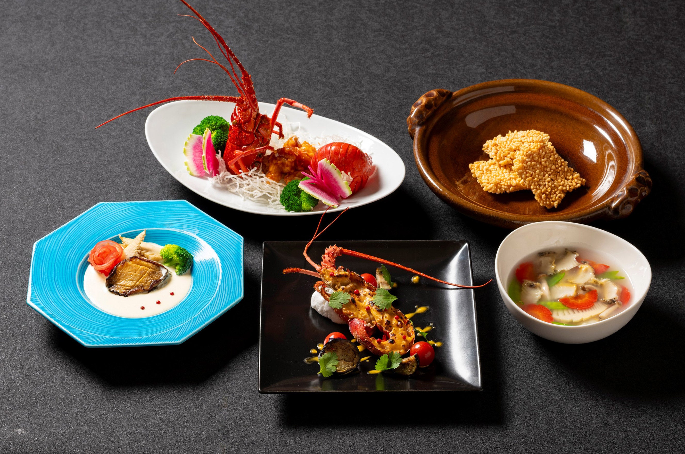 お好みの調理法が選べる国産伊勢えびをメインに、ふかひれの姿煮込みや鮑など贅沢な海の幸をお愉しみいただける期間限定コース。