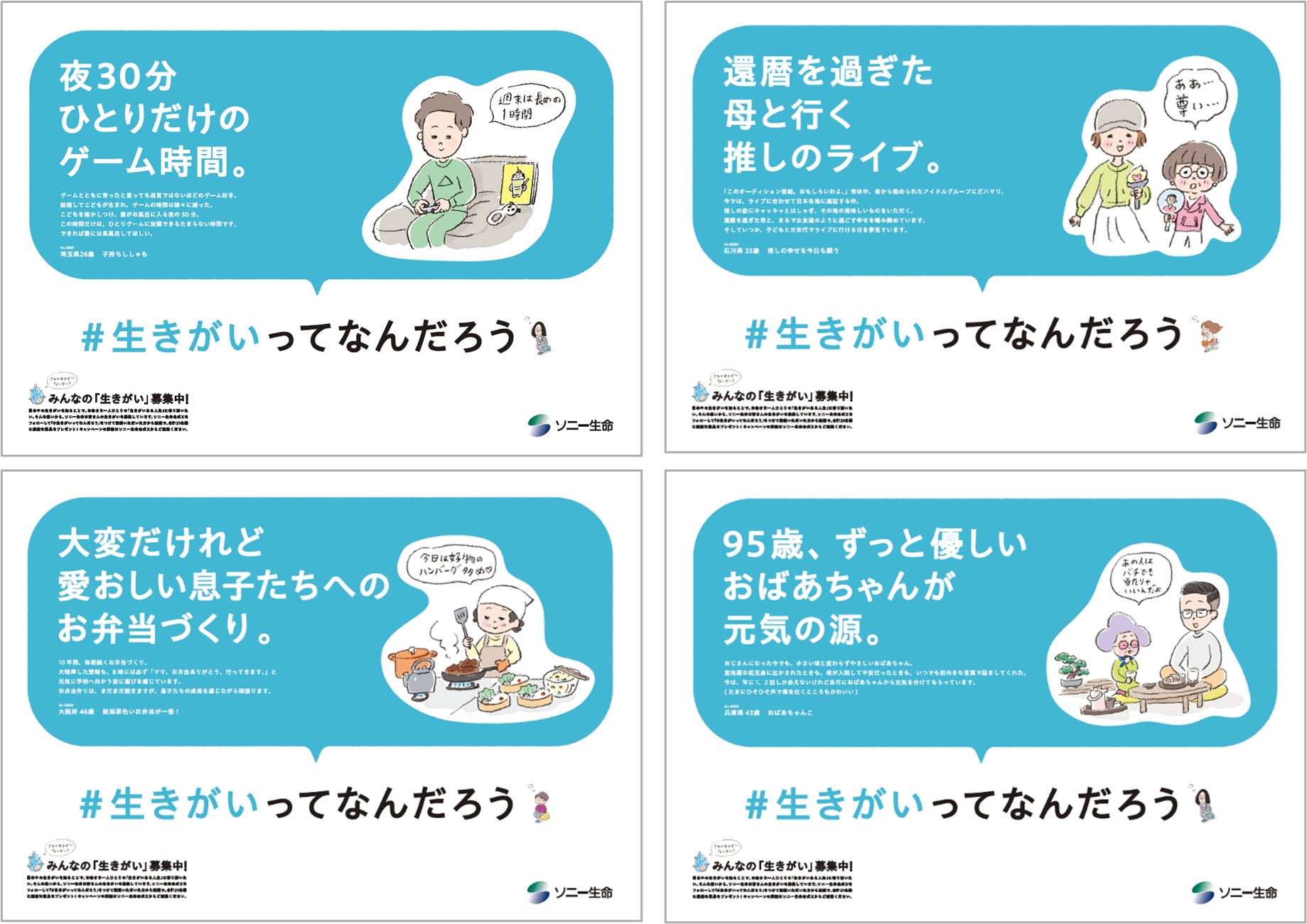 お客さまや当社の社員から集めた「日常のささやかな生きがい」エピソードを、広告「みんなの #生きがいギャラリー」(全12種)として全国各地の商業施設や駅で掲出します。