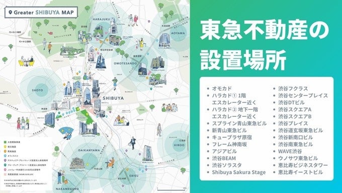 また、東急不動産が運営する「ハラカドShibuya Sakura Stage」などの商業施設には、全22か所にのアイカサスポットを設置完了いたしました。