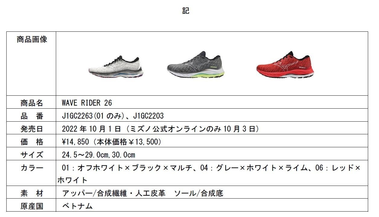 ミズノは、独自に開発した高反発ソール素材『MIZUNO ENERZY(ミズノエナジー)』を搭載した「WAVE RIDER 26(ウエーブライダー トゥエンティシックス)」を、全国のミズノランニング品取扱店で10月1日に発売※1します。また、9月16日からミズノ公式オンライン、ミズノ直営店では予約受付を行います。