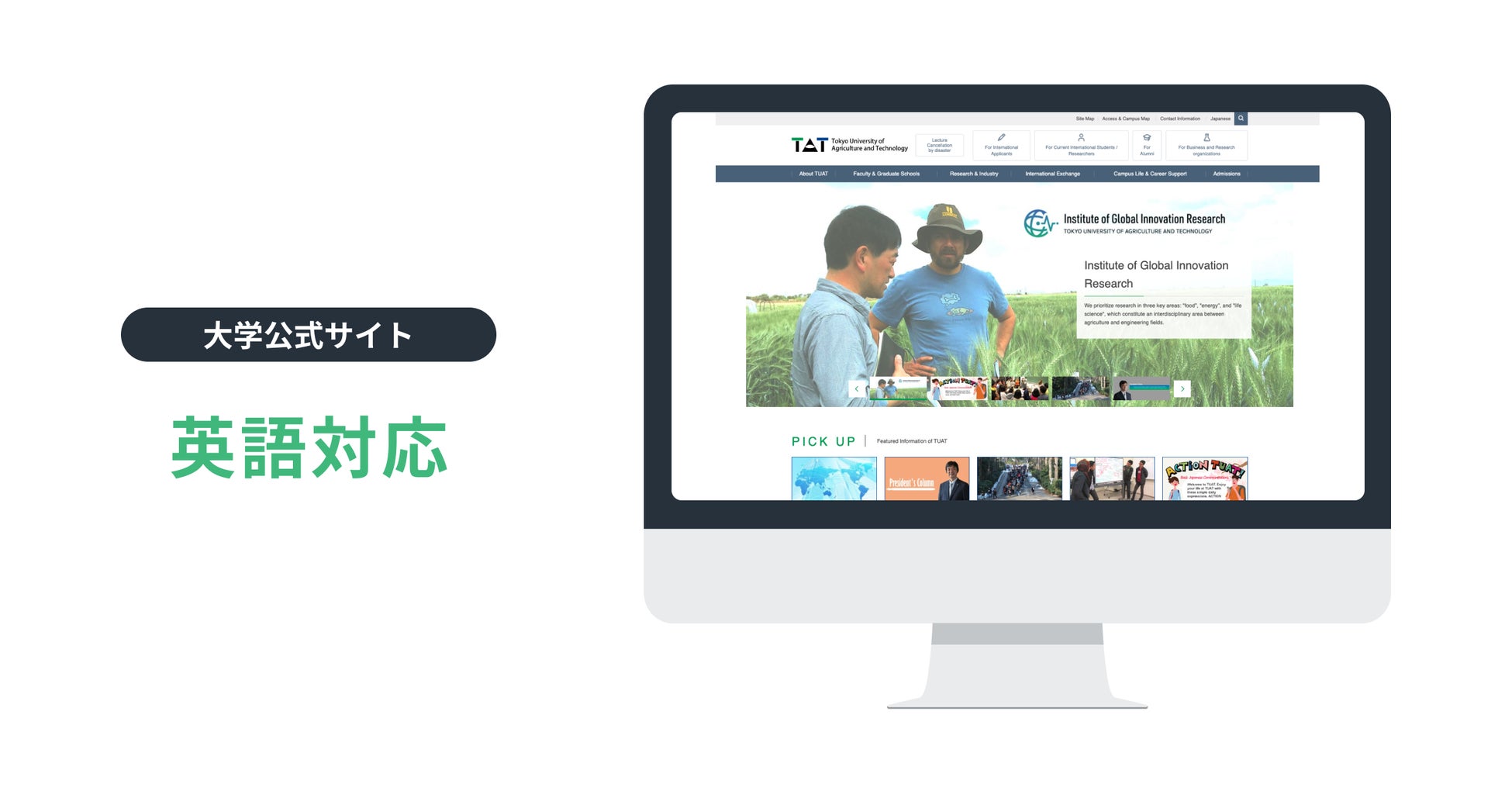 Wovn Technologies株式会社(以下 WOVN)が提供する Web サイト多言語化ソリューション『WOVN.io(ウォーブン・ドットアイオー)』が、国立大学法人 東京農工大学(本部:東京都府中市、学長:千葉 一裕、以下 東京農工大学)の公式サイトに導入され、英語版の公開が開始されました。外国人留学生や海外の研究者などとの交流が活発化する中、学内外に向けた情報を英語で発信することで、教育・研究の国際化をさらに推進されます。