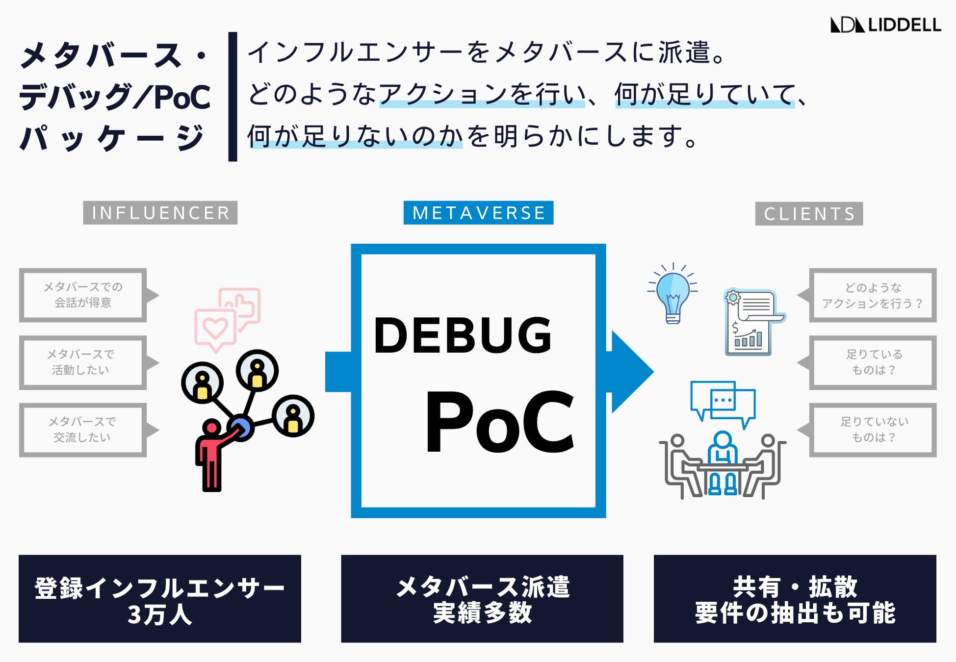 SNS・インフルエンサーマーケティング事業を展開するLIDDELL株式会社 (本社:東京都港区、代表取締役:福田 晃一、以下リデル) は、インフルエンサーがメタバースをPoC(Proof of Concept:概念実証)する《メタバース・デバック/PoCパッケージ》を、2022年7月より提供開始致しました。