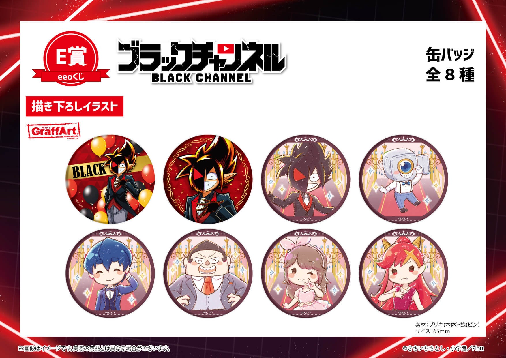 缶バッジにはPlott新規描き下ろしのブラックのほかに、GraffArtで描かれたひめやアカネなど『ブラックチャンネル』ファンお馴染みのキャラクターたちが勢ぞろい!