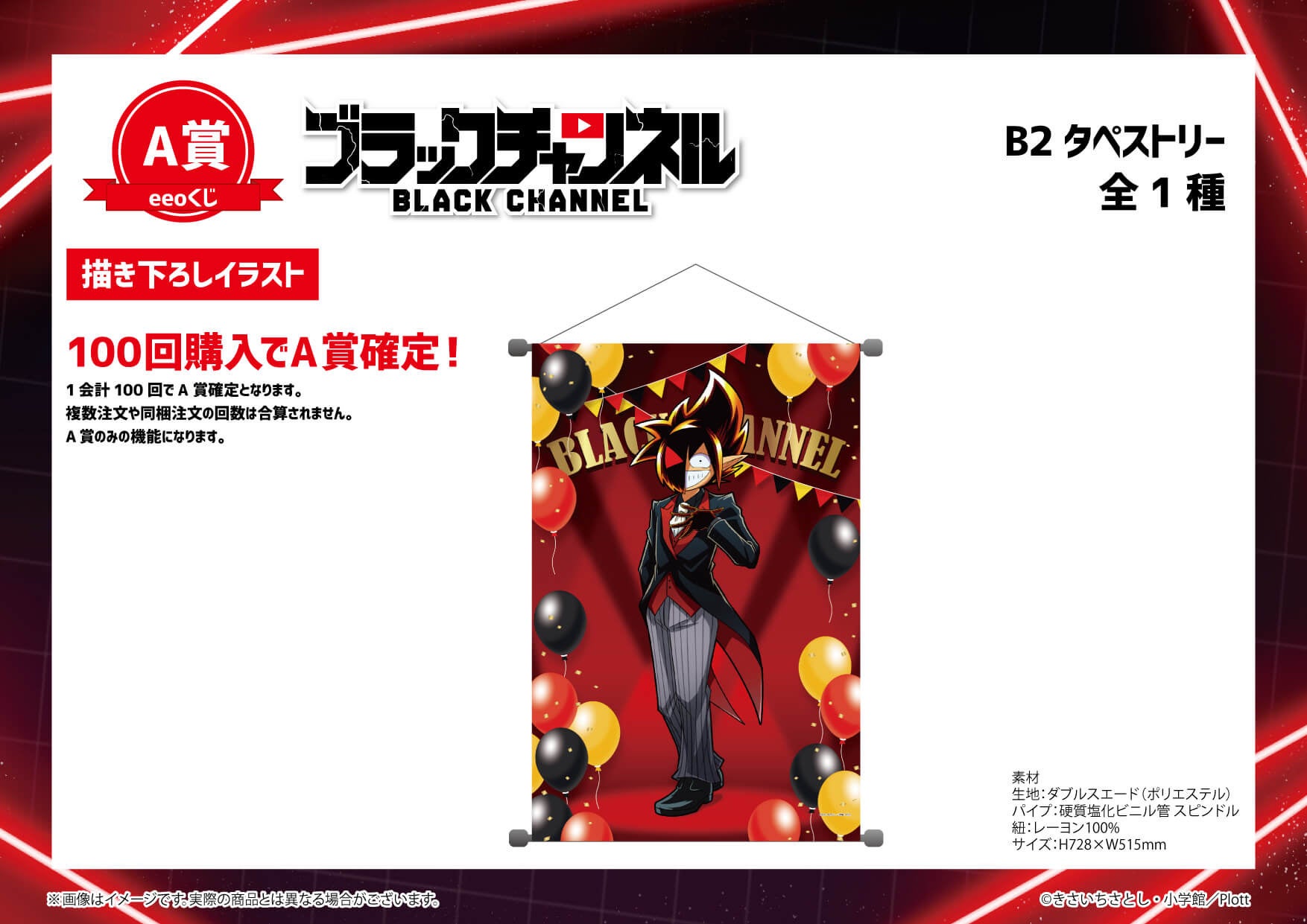 『ブラックチャンネル』の「eeoくじ」のA賞はB2タペストリー! およそ縦73cm、横52cmとビッグサイズで、一番レアなA賞にふさわしいグッズになっています。