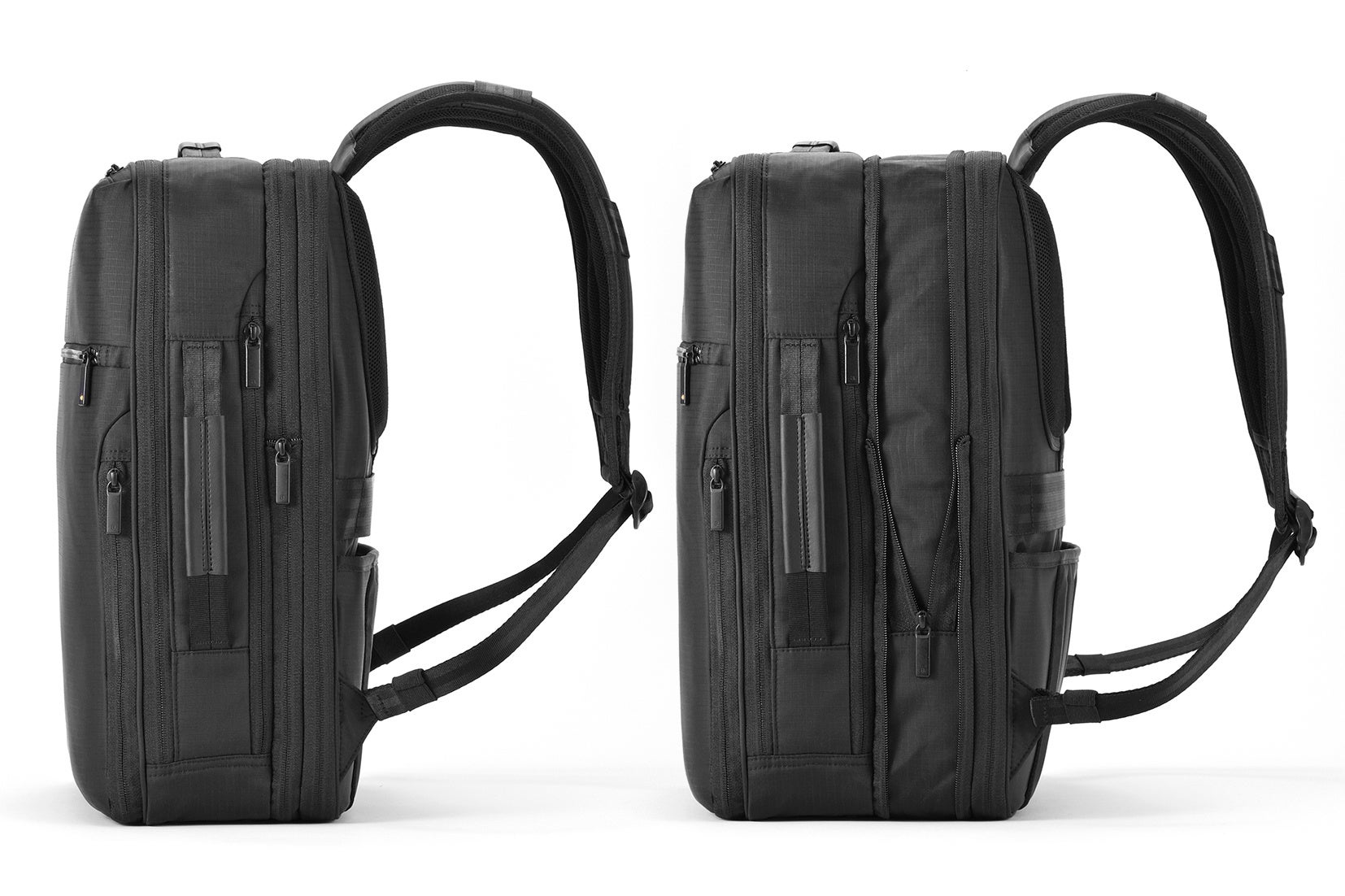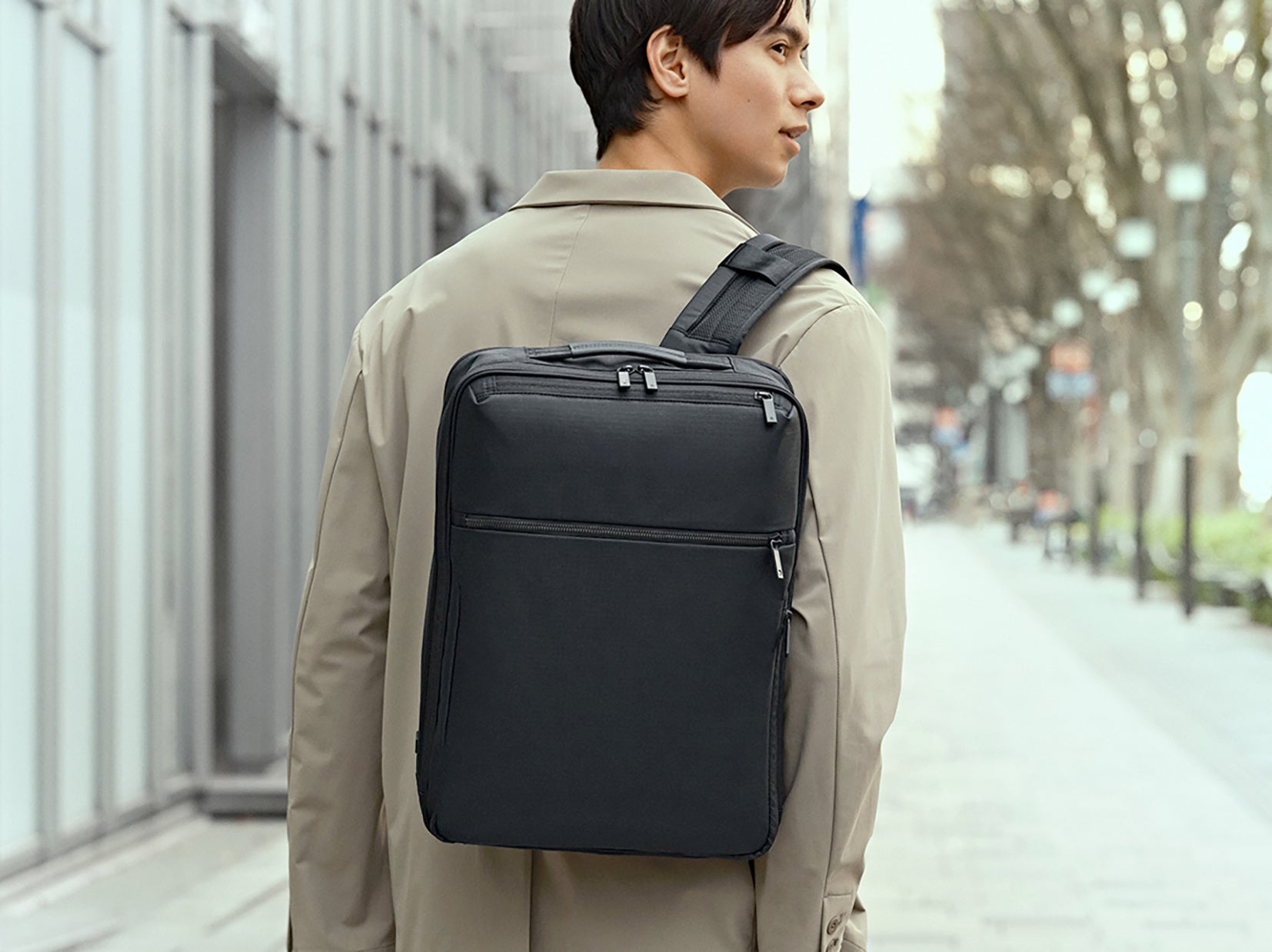 2018年より発売開始した、スリムなボディに収納力を凝縮したリュックシリーズです。「2019年度グッドデザイン賞」を受賞し、シリーズ累計販売個数24万個を突破しました(2022年6月時点)。電車内で邪魔になりにくい周囲に配慮した設計で、交通各社の推奨する複数の持ち方に対応します。