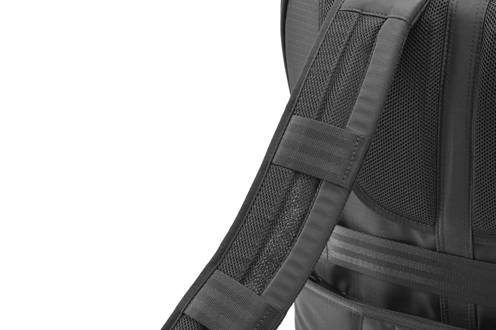 肩ベルトの一部をメッシュ素材に置き換えることで、強度を損なうことなく通気性を高めた新構造の「ベンチレーションハーネス」を搭載。また背面パッドに凹凸を設けることで空気の通り道を確保し、背部の放熱性を高めています。