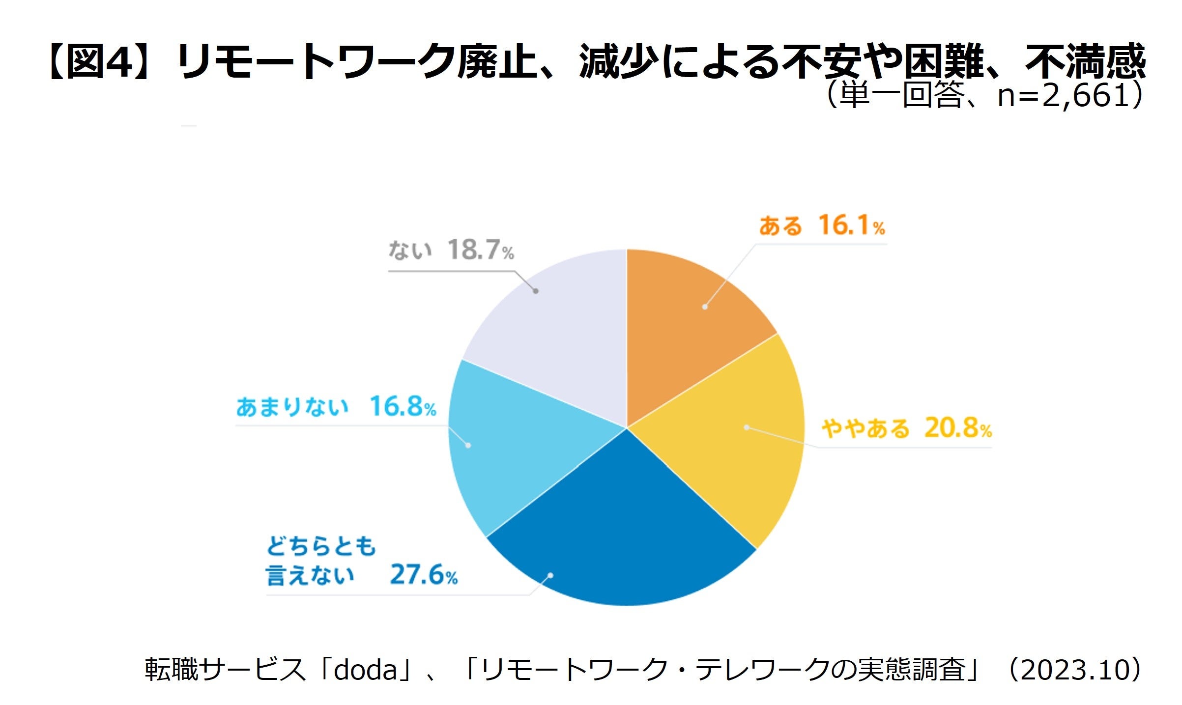 「リモートワークが廃止、減ることで不安などを感じる」と回答した人は全体の36.9%