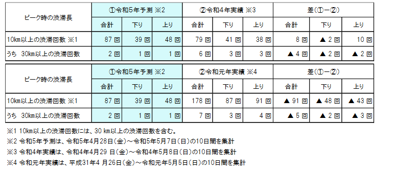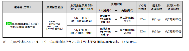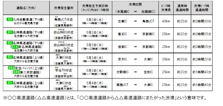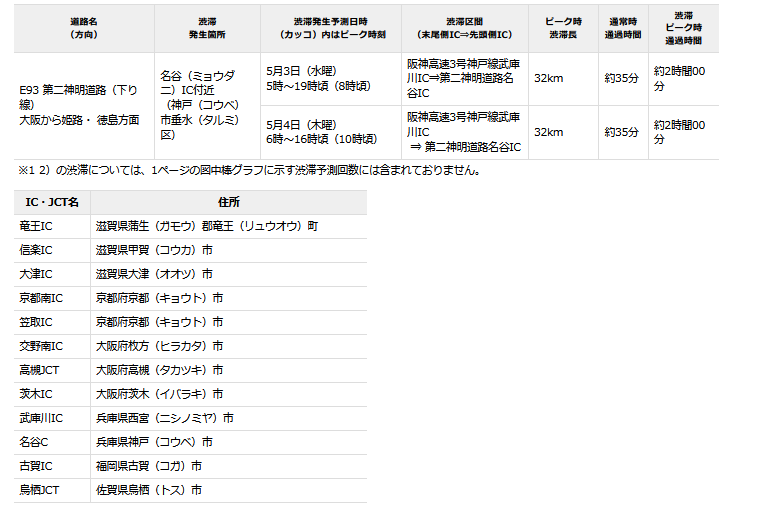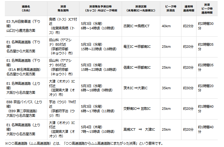 NEXCO西日本管内のゴールデンウィーク期間における高速道路の渋滞予測について