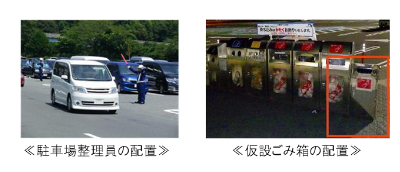 混雑を予測している期間に、休憩施設での駐車場整理員の配置、仮設ごみ箱の設置、清掃員の増員などの対策