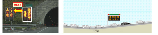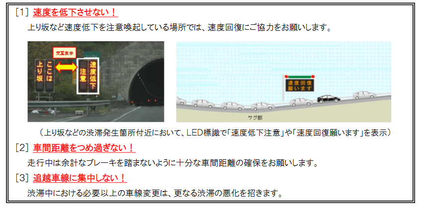・上り坂など速度低下を注意喚起している場所では、速度回復にご協力をお願いします。
