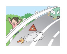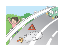 ◇停車後は、ハザードランプを点灯するとともに発炎筒や停止表示板で後続