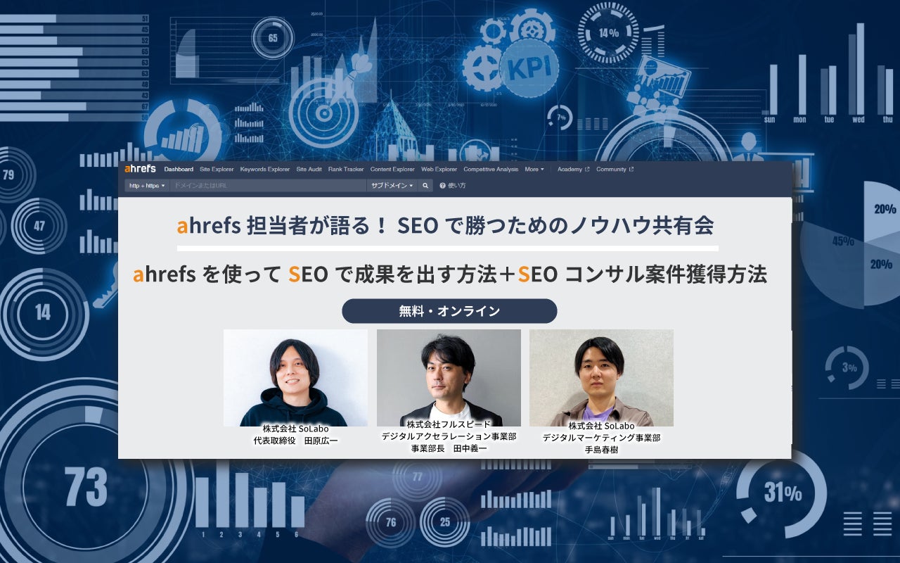 また、株式会社SoLaboのSEO担当様が、どのようにahrefsを活用しているかもあわせてご紹介します。ご興味のある皆さまのご参加をお待ちしています。