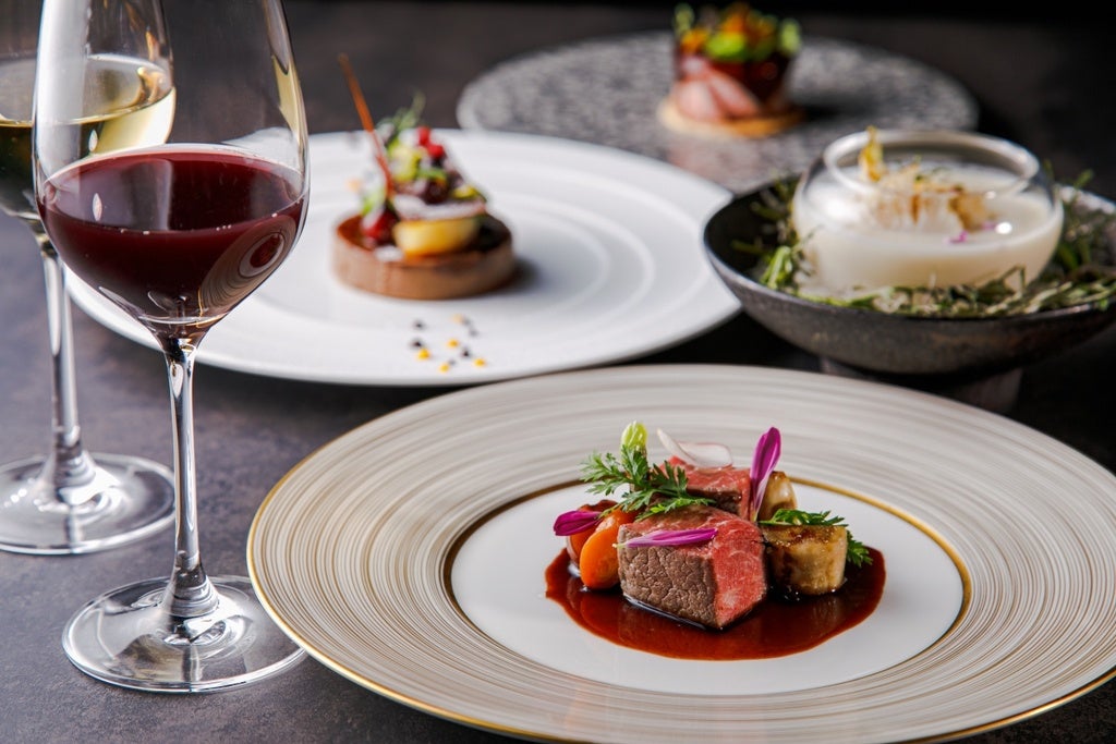 その一つであるアカガネリゾートは、京都東山にあり、銅の加工メーカーとして250年続く老舗企業オーナーの邸宅を修復・再生した、レストランとウェディングの会場です。その敷地は約700坪と広大で、大正時代に贅を尽くして建てられた歴史的な邸宅と緑深い庭は、まるで日常の喧騒を離れたプライベートリゾートのよう。そんな隠れ家のようなロケーションに恵まれたダイニングでは、京の食材を贅沢に使用したシェフこだわりのフレンチをご提供しています。