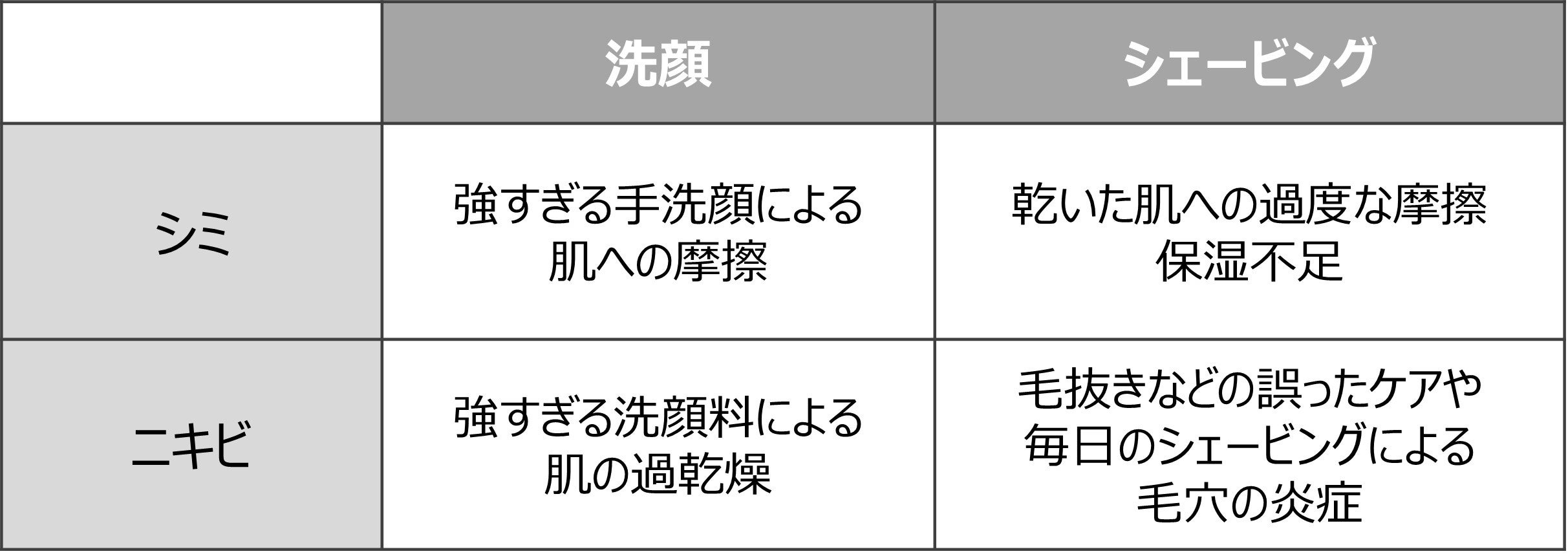 - 男性の肌トラブルを引き起こすのは毎日の●●が原因?普段の生活の中でやりがちな「NG習慣」とは?