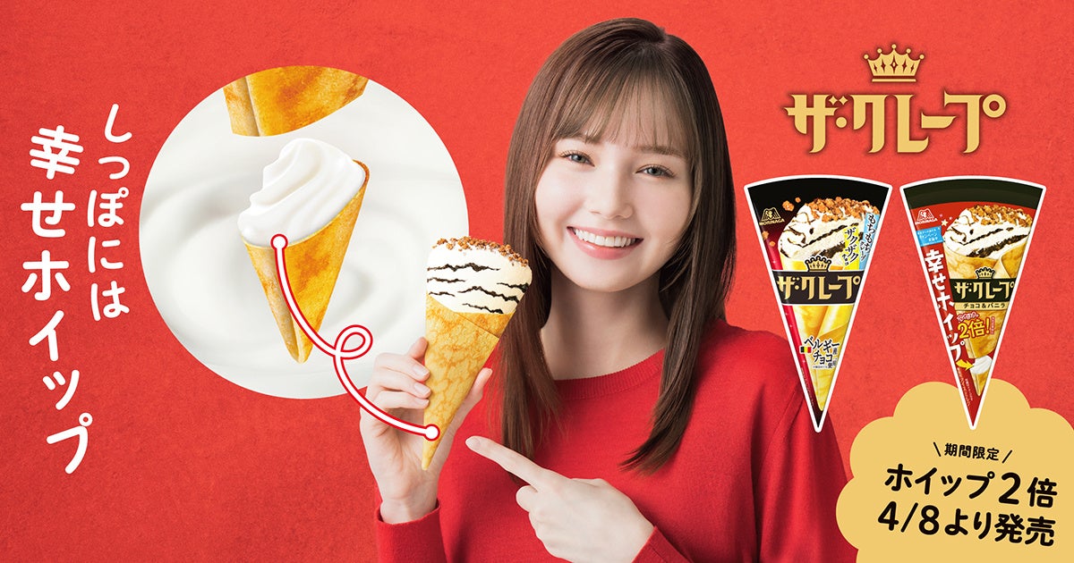 「幸せホイップ」の量が2倍になった「ザ・クレープ<チョコ&バニラ>幸せホイップ2倍」を4月8日より期間限定発売